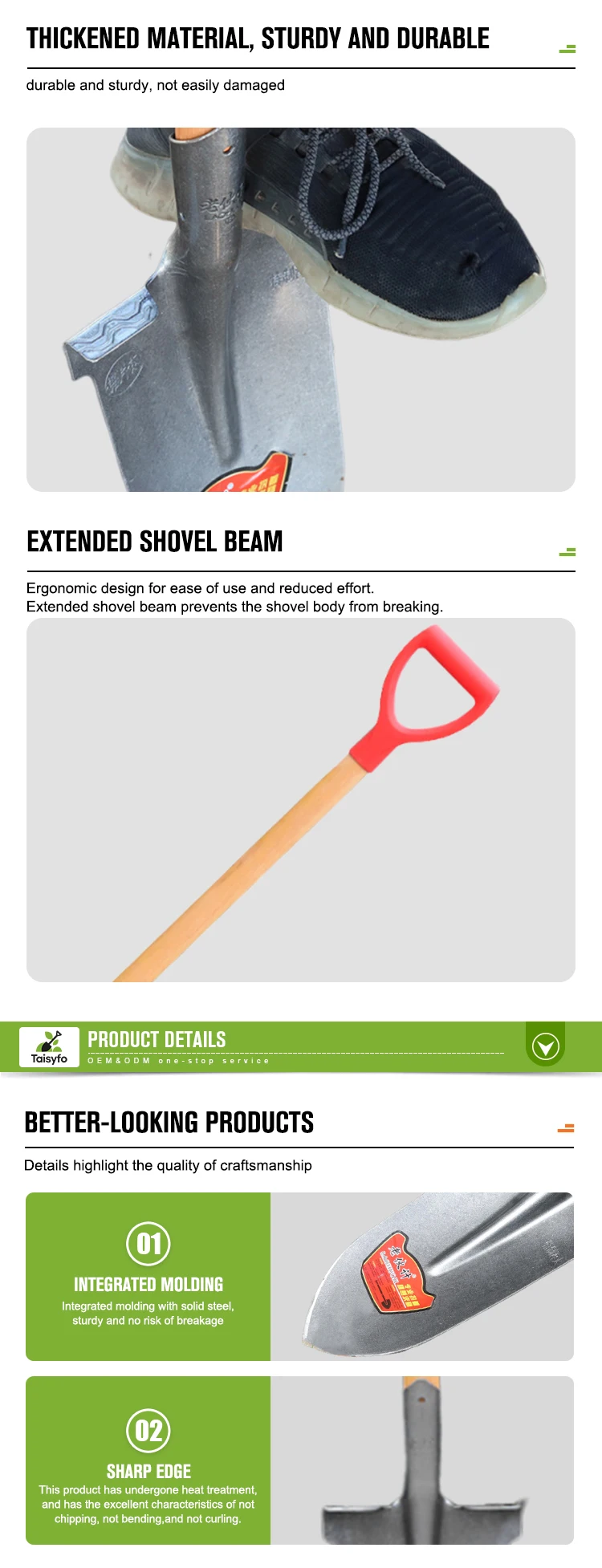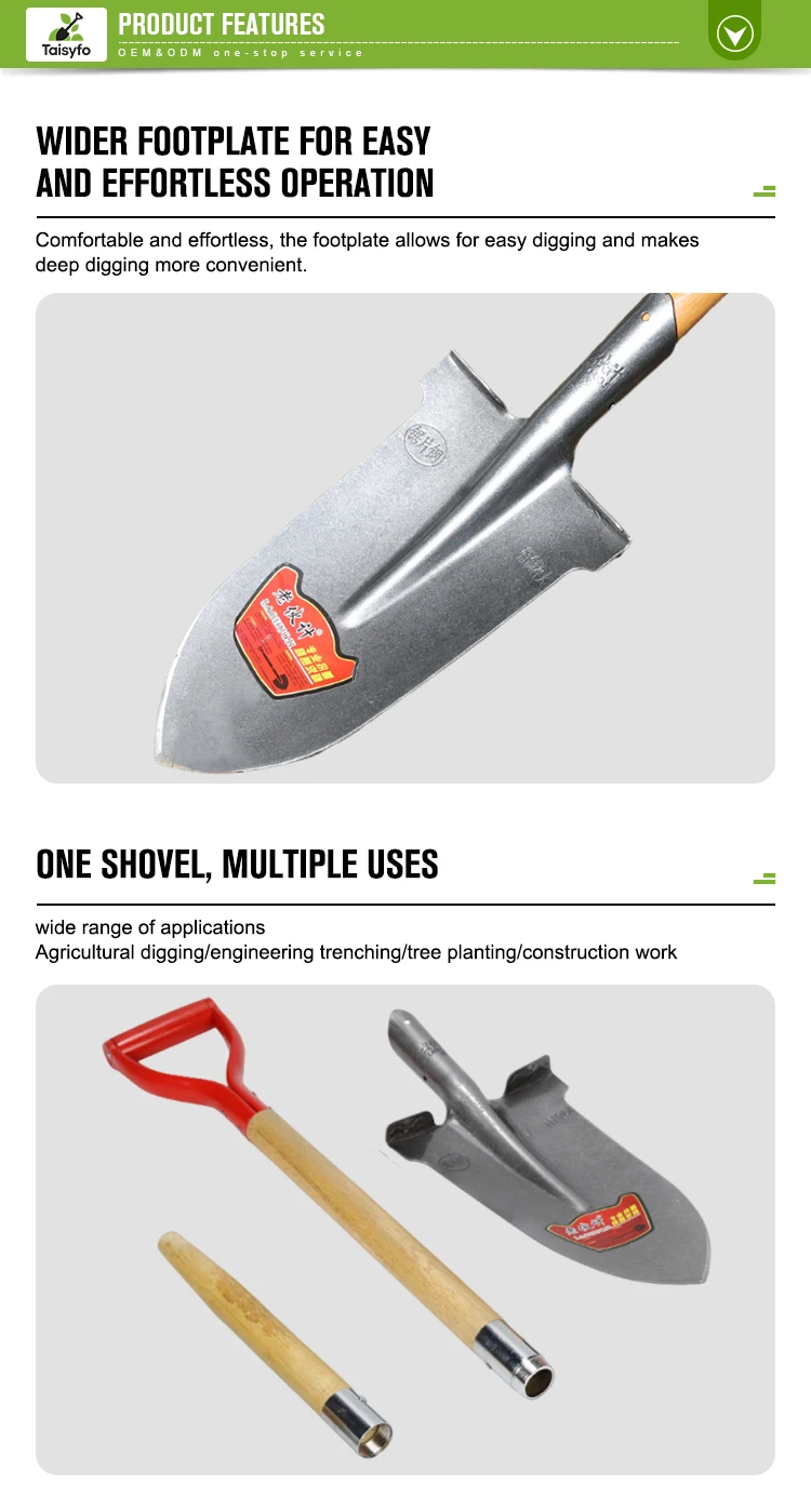 Easy-to-Hold 42cm DIY Steel Shovel with Round Head Wood Handle Thickened Material for Garden Digging
